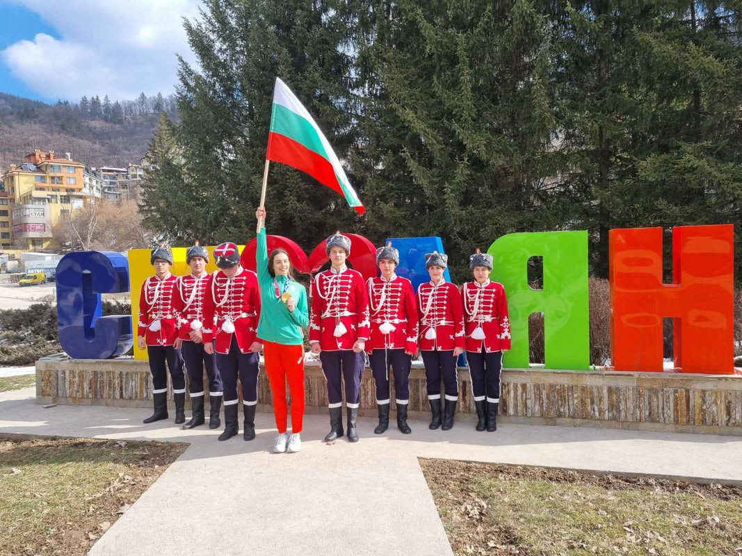 От смолянската гимназия посрещнаха олимпийската ни гордост с шпалир от гвардейците на III-ти Ученически гвардейски отряд. Изненадите обаче тепърва започваха. В нейна чест последва изпълнение на химна на Родопите – „Бела съм, бела, юначе“ под съпровода на гайда, както и предизвикателство от страна на учениците към Мадлен – да облече автентична родопска носия и да се включи в уроци по родопски хора. Директорът на ЕГ „Иван Вазов“ не пропусна да демонстрира и типичното смолянско гостоприемство, канейки гостите да се включат във вкусно изживяване – дегустация на родопски ястия, приготвени от баба Сийка.