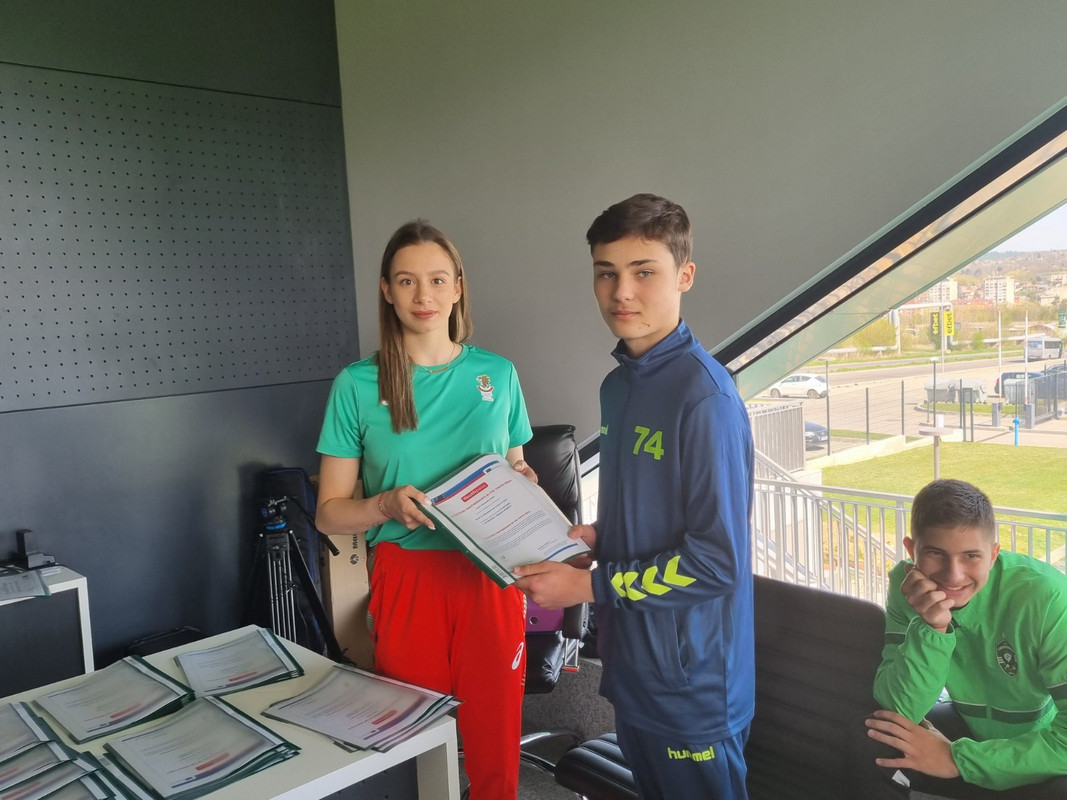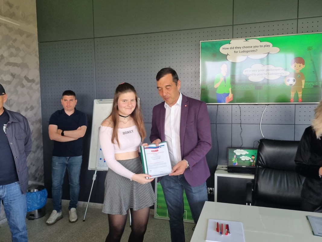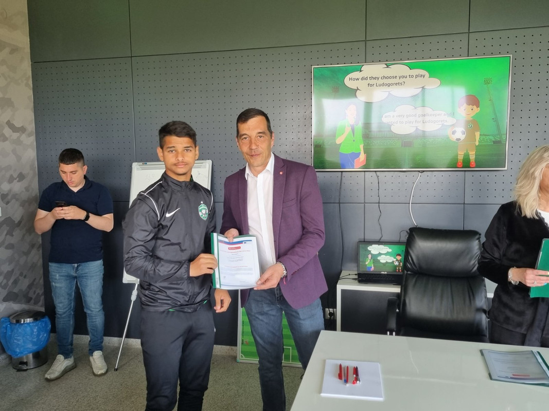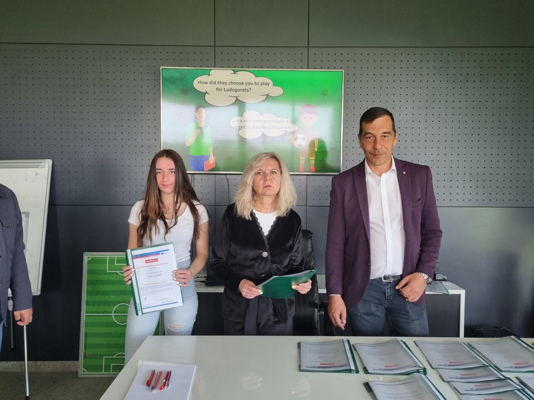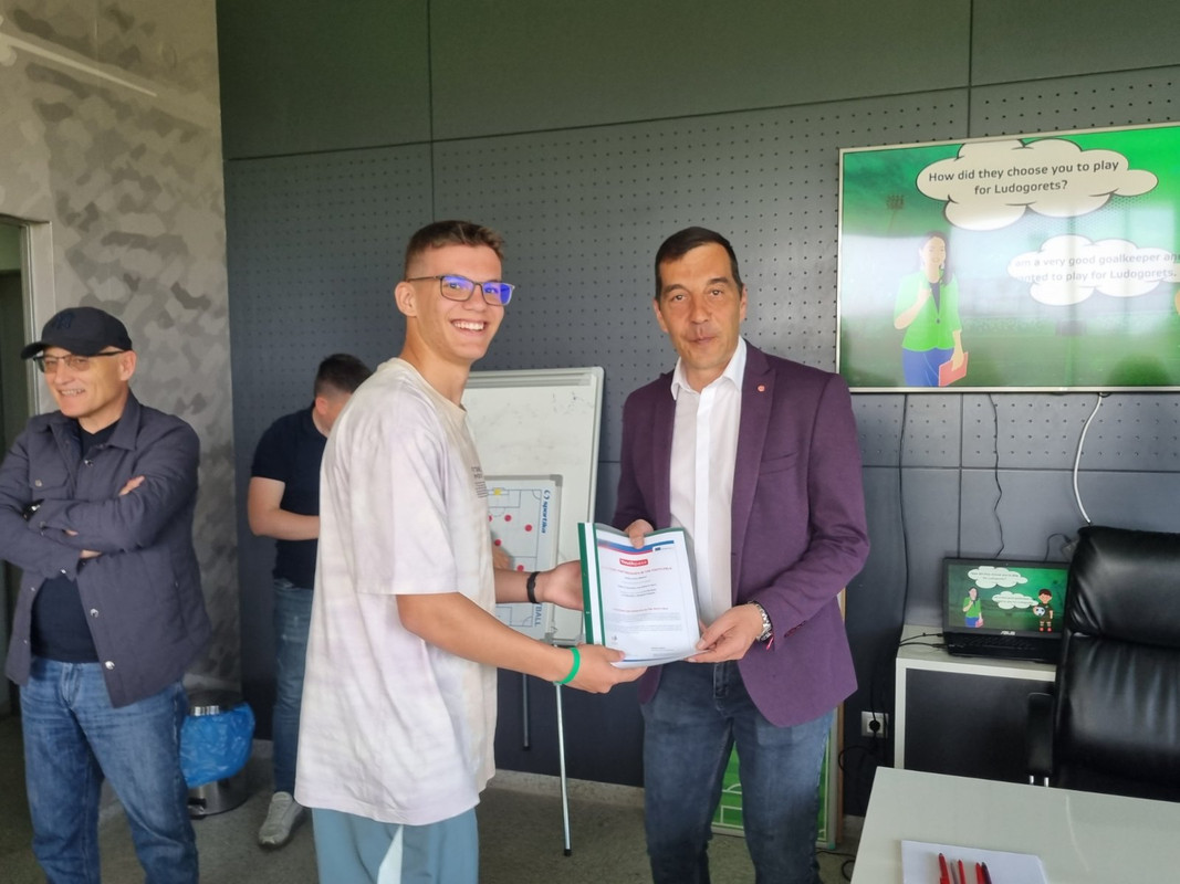 Изпълнителният директор на футболния шампион Лудогорец Ангел Петричев и олимпийската шампионка с ансамбъла по художествена гимнастика Мадлен Радуканова връчиха сертификати на младежи от България, Испания, Сърбия и Румъния, участвали активно в тестването на дигитални учебни продукти към платформата „Умни в образованието, активни в спорта“ и едноименния проект. Това се случи на тренировъчната база „Гнездо на орли“ в Разград, където се проведе 7-дневен международен обмен в рамките на проекта.