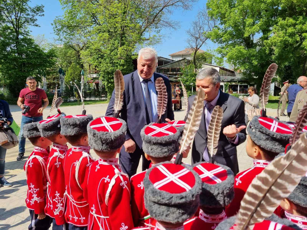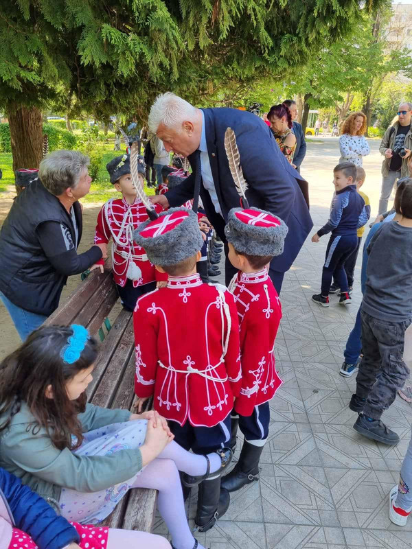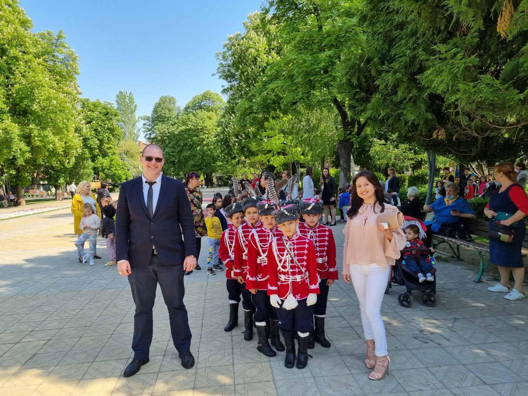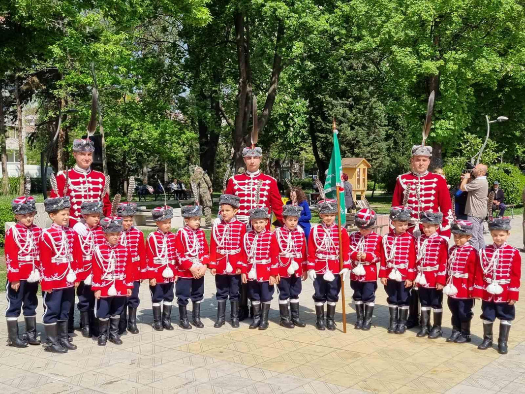 Пременени в четнически униформи, децата отговориха отривисто „Здраве желаем!“, когато градоначалникът ги поздрави. Той пожела на малките юнаци след време да се влеят в истинския гвардейски полк.