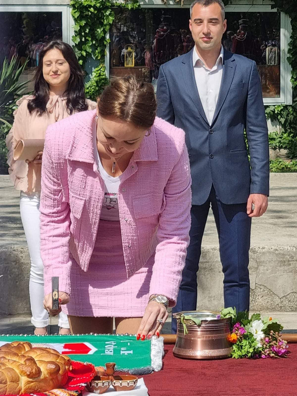 Здравко Димитров заби пирон в знамето. След него това направи и олимпийската медалистка от ансамбъла по художествена гимнастика и общински съветник в Пазарджик Ренета Камбурова.